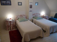 Chambre n° 4 grande chambre 1lit t de 140 et 1 lit une pers.en mezzanine lavabo, douche (wc indépendant)